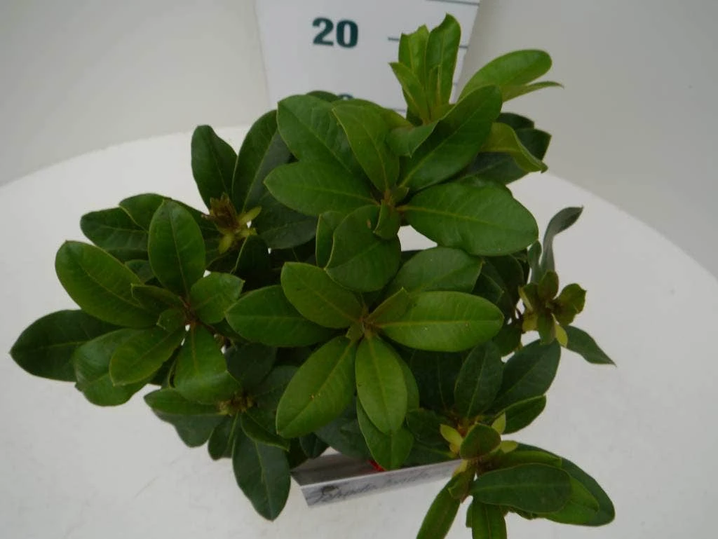 Doordat Rhododendrons vaak even hoog als breed worden, meten sommige kwekers de maat ook in de breedte.