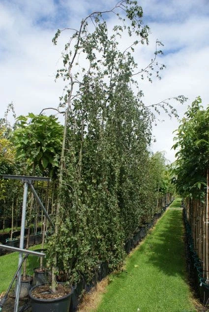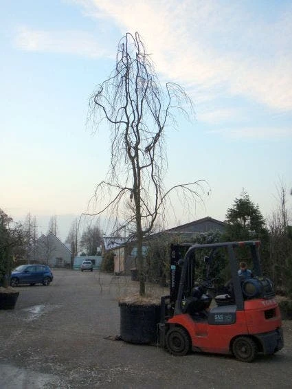 De Treurbeuk heeft takken die in de breedte groeien en jonge takken die hangen.
